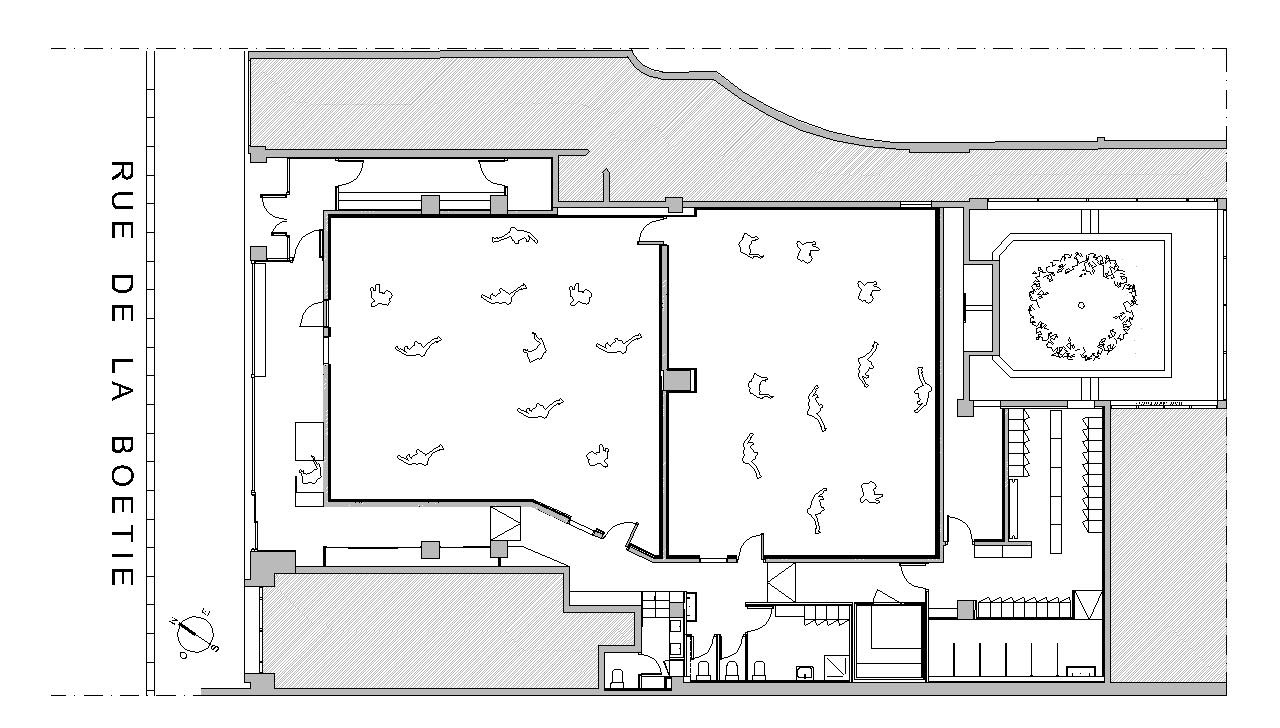L’accueil en façade sur rue, les sanitaires, les vestiaires et les locaux de services ont ensuite été aménagés autour des deux grandes salles de plus de 110m².