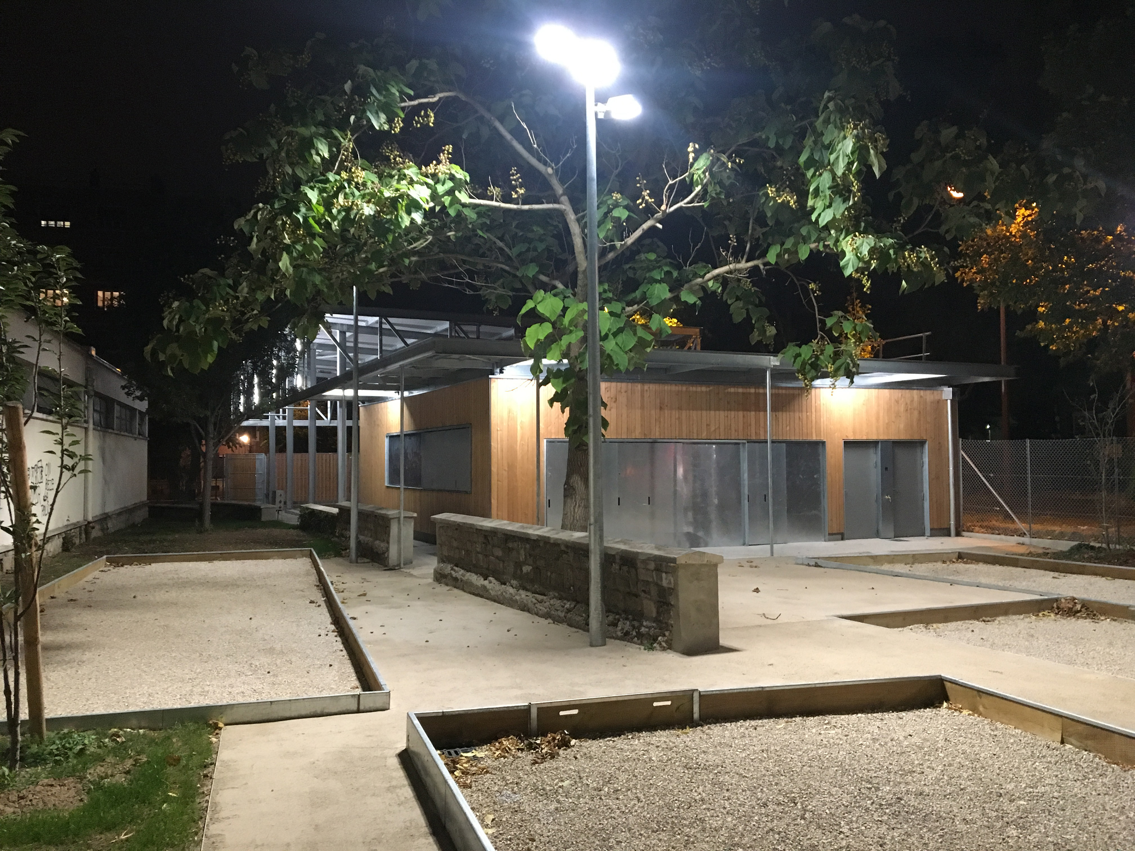 Le Boulodrome sera construit sur le site Sportif Élisabeth. Il comportera 16 terrains de pétanque, dont 3 pistes couvertes et un club house. Le boulodrome est conçu comme un espace à la fois dédié aux associations de boulistes et permettant d’accueillir du public fréquentant le complexe sportif Élisabeth. Le club house est situé au cœur du projet, entre les pistes couvertes et celles en plein air. Il est l’espace fédérateur du projet autour duquel s’organise la vie du site et la forte dimension sociale de son usage. Pour le traitement paysagé des pistes, les revêtements existants en béton et bitume seront conservés et en partie recyclés. Les terrains de boules et espaces verts y seront incrustés, comme à l’emporte-pièce. Des arbres tiges et en cépées y seront intercalés pour procurer une ombre agréable aux utilisateurs l’été. Les matériaux utilisés sont le de bois brut et l’acier galvanisé pour leurs robustesses mais également pour des raisons techniques et économiques.
